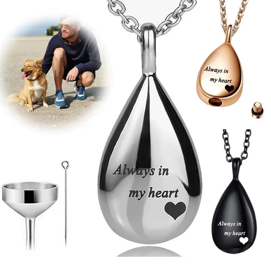 Elegant Stainless Steel Teardrop Pet Urn Pendant - Cherish Your Beloved Cat or Dog Forever with This Unique Keepsake Necklace